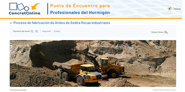 Concretonline, portal de internet especializado en el sector del hormigón, áridos y gravas, cementos, y todos los sectores afines, se ha hecho eco en su medio de la forma de operar de Sodira Rocas Industriales.